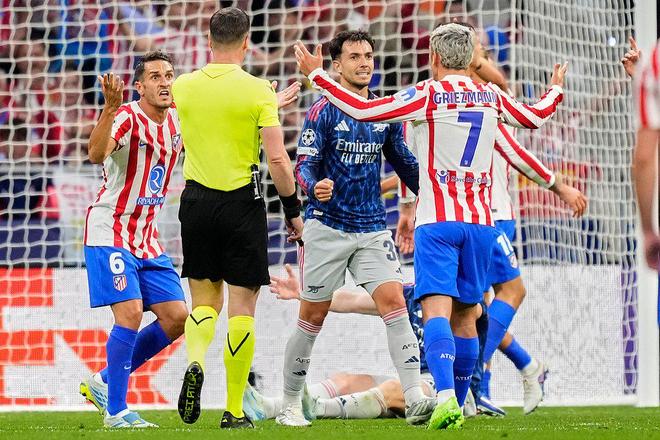 如果马竞的“双层大巴”,是他们面对传控型球队的常规操作,那么本场被射门18次(仅低于对垒曼联,22次)的阿森纳,进攻同样也只剩了“挤地铁”,哲凯赖什和埃泽都是在禁区内和对手接触后倒地,但VAR似乎也看腻了“剐蹭”。